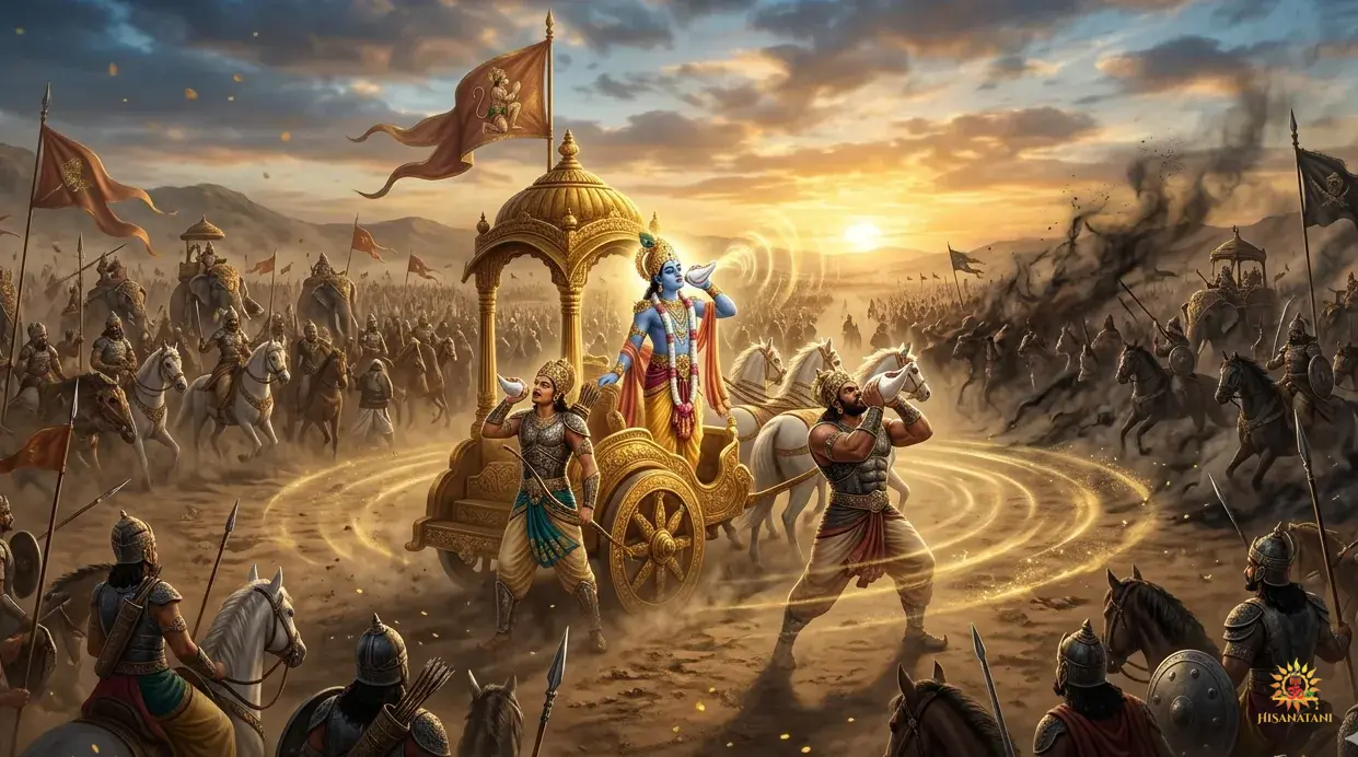 Krishna blew His conch, Pāñcajanya..." A sacred breath that changes the course of destiny.